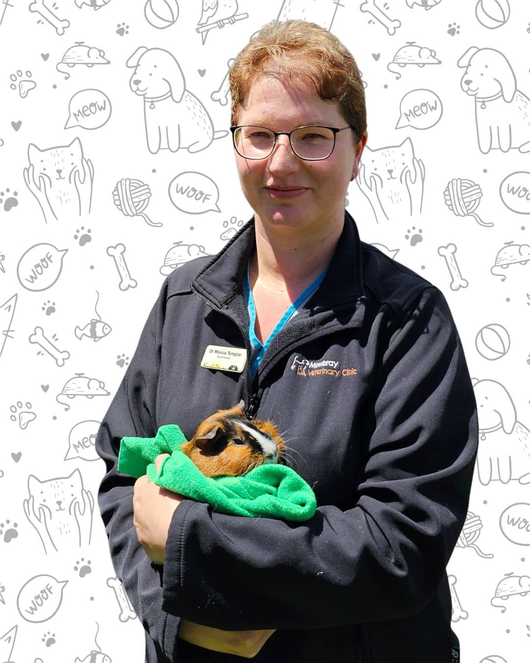 Dr Marcia Templar is originally from Tasmania and graduated from Melbourne University in 2004. After graduation she has worked in a number of mixed practices in both Victoria and Tasmania Including her own veterinary practice for 7 years. In October 2020 She hung up her gum boots and joined the team at Mowbray vet where she now enjoys focusing on small animals, with a keen interest in both medicine and soft tissue surgery. Her pets include two rescue cats “Spare” and “Wildfire” and three guinea pigs “Bob”, “Jimmy” and “Frenchy”. In her spare time she enjoys spending time with her family, walking with her friends and working on craft projects.