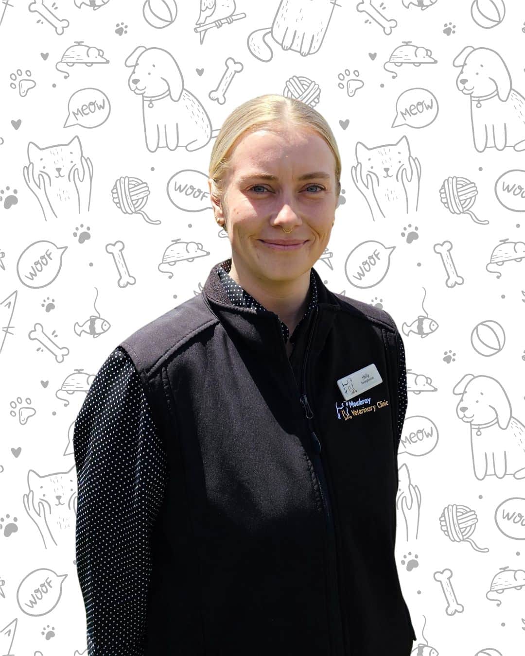 Holly has been with Mowbray Vet since 2022, Holly came from an administrative background to follow her love of animals.